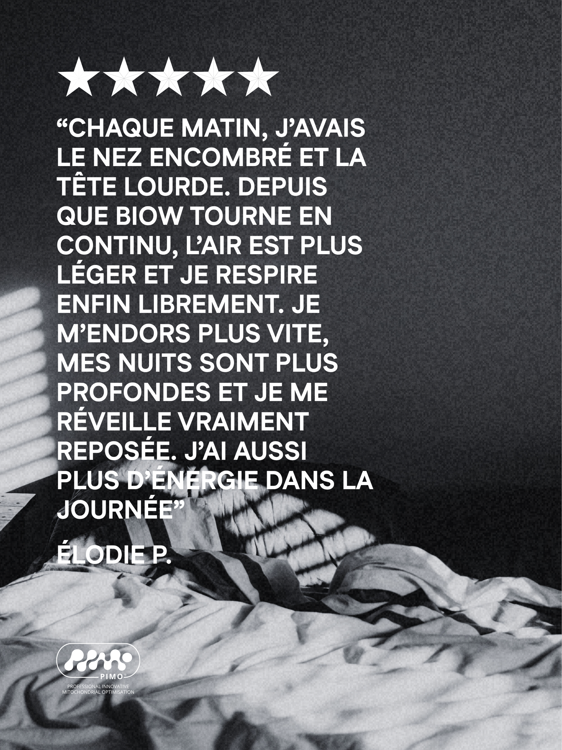 En optimisant l’air que vous respirez, BIOW favorise un sommeil profond, libère la respiration, préserve la jeunesse cellulaire et accélère la récupération physique – des bénéfices mesurables dès les premières nuits.